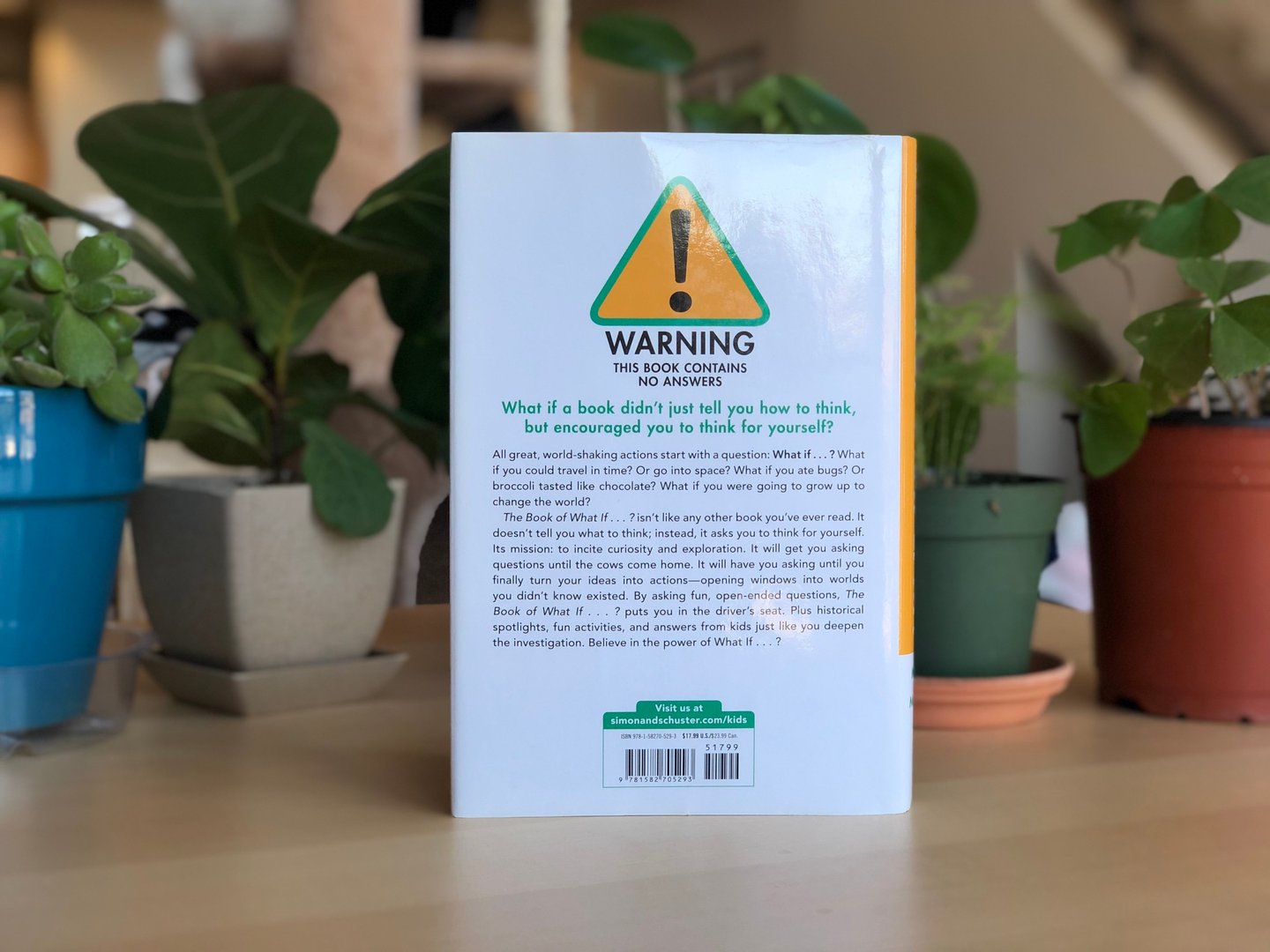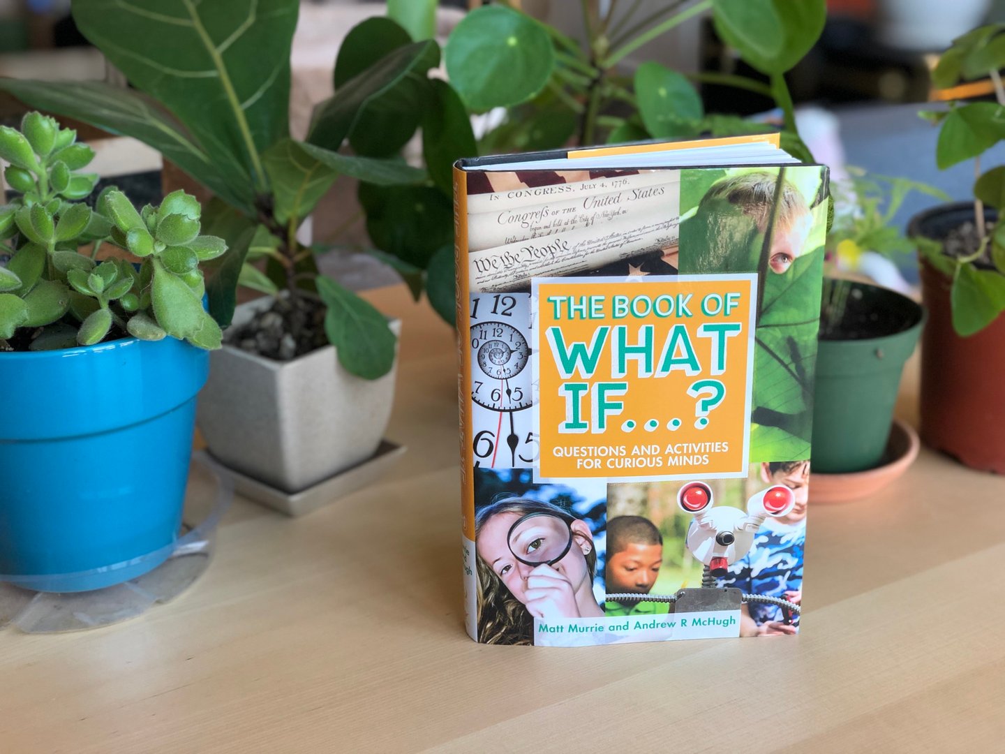 The Book of What If…?: Questions and Activities for Curious Minds uses What If…? questions to help kids engage with complex topics: alternative histories, justice, philosophy, gene modification, death, identity, neuroscience, and so on. For example:
