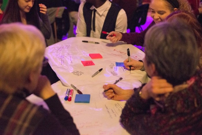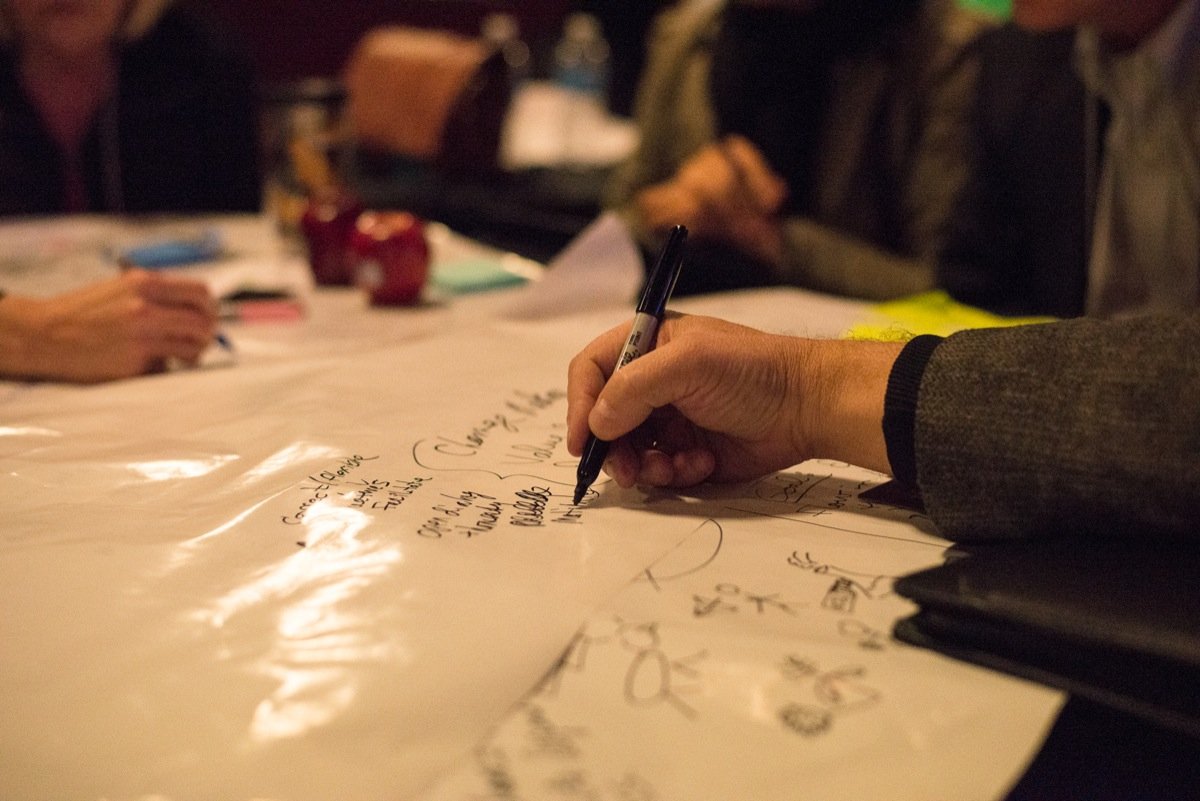 Brainstorming during a Startup Weekend.